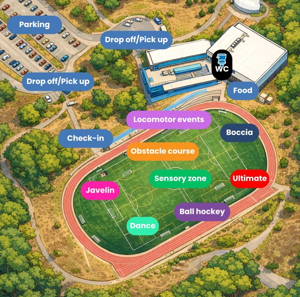 The day will feature a variety of adapted throwing, movement, and locomotor activities designed so that all participants can experience success. Students will rotate through activity stations that encourage movement, build confidence, and foster social connection.